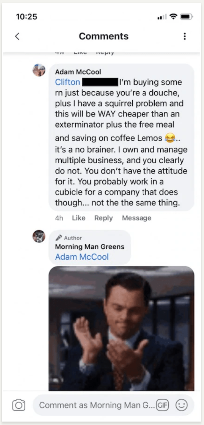 YOU: "Are you kidding me?! Look at this, people are buying for the simple fact this Morning Man company is ruthlessly putting trolls in their place..."