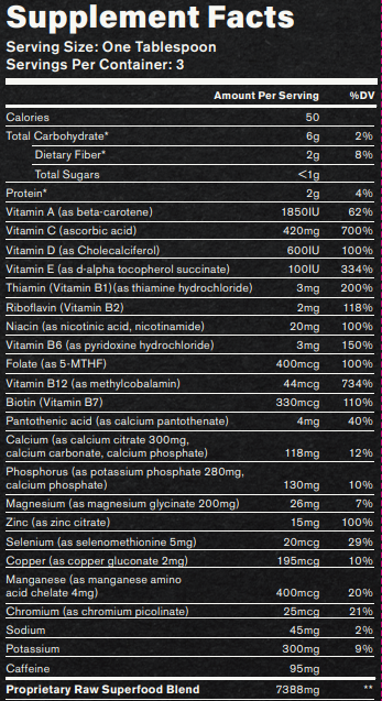 Morning Man Greens uses just a small dose of natural caffeine combined with over 75 vitamins, minerals, superfoods, and extracts to deliver all day energy with no crash ever.†